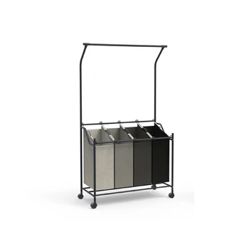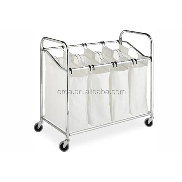 Metal Frame 4 Bag Rolling Clothes Hamper Laundry Cart Dirty Clothes Storage Buy Clothes Hamper Iron Pant Hamper Laundry Carts Commercial Product On Alibaba Com