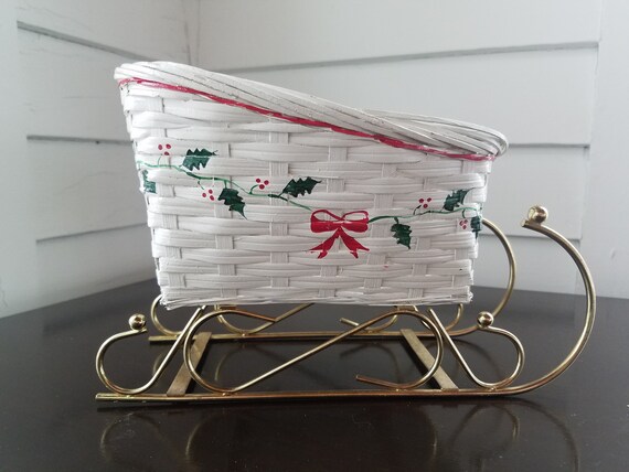 Vintage Miniature White And Red Rattan And Metal Santa Sleigh Etsy