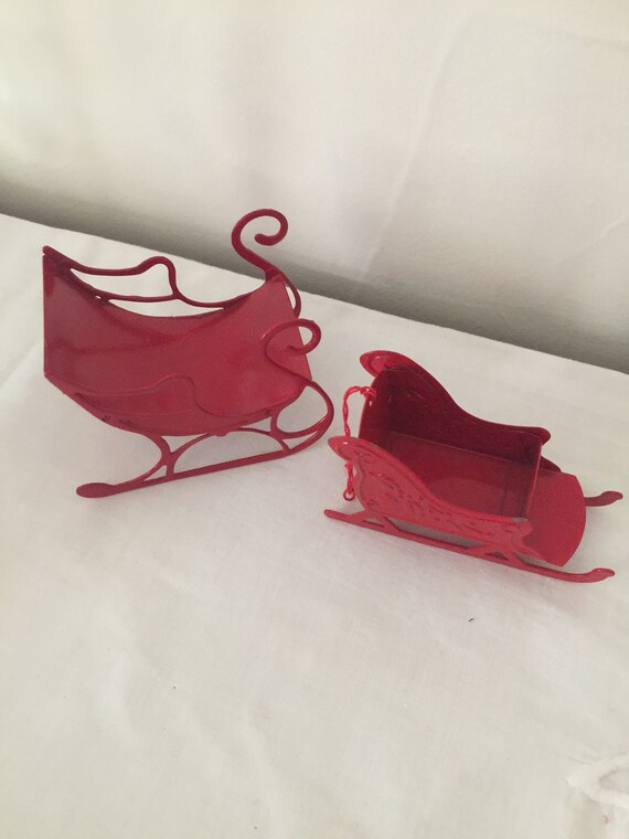 All Chic Small Red Metal Vintage Christmas Santa Sleigh Sledge