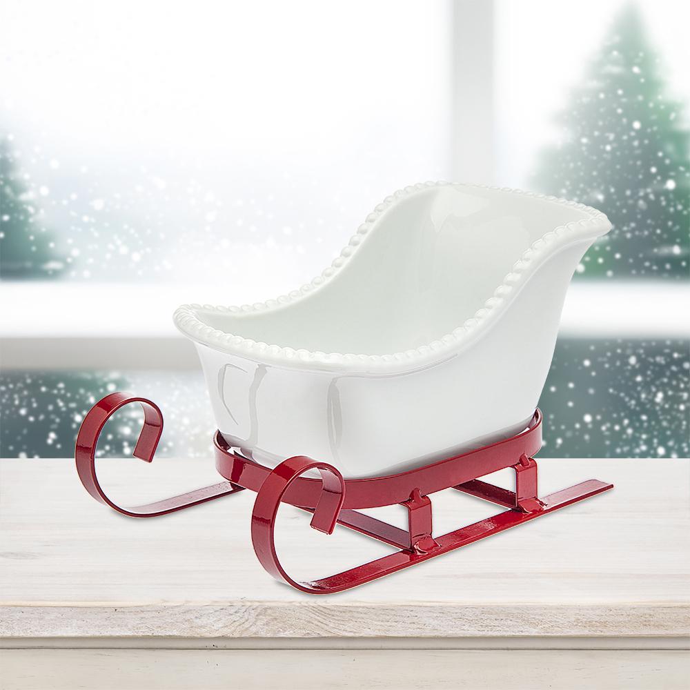 Godinger Metal Santa Sleigh And 3 Piece Relish Bowl 70535 The