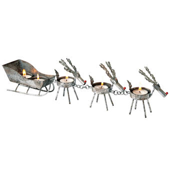 6 Metal Reindeer Candle Holders Santa Sleigh