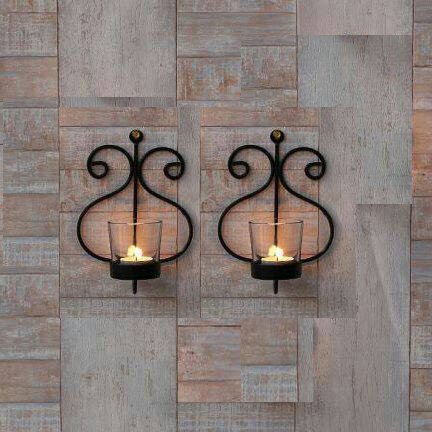 Buy Collectible India Set Of 2 Metal Black Wall Mounted Tea Light