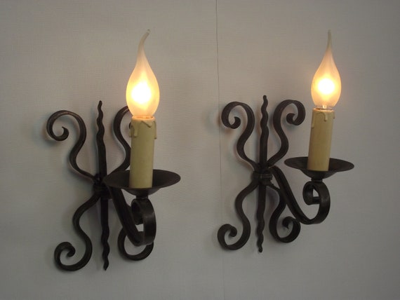 Large Scroll Wrought Iron Pillar Candle Wall Sconce Etsy