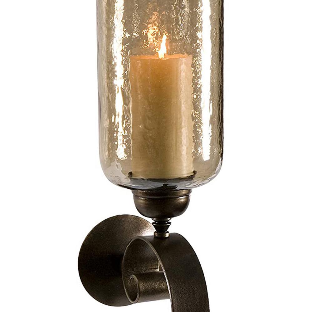 Tuscan Scroll Forged Metal Amber Glass Candle Wall Sconce Old World Iron Large Candle Wall Sconces Bronze Candle Wall Candles