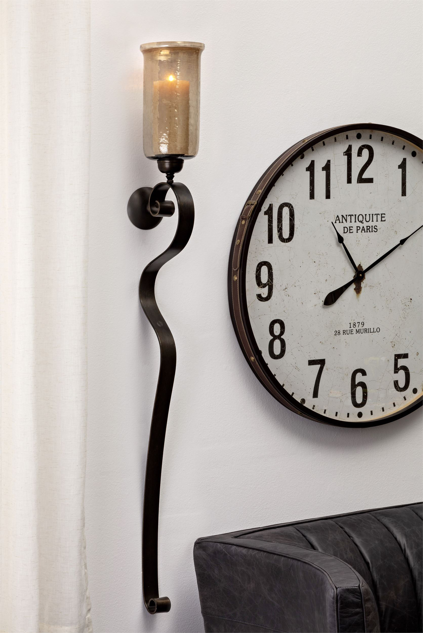 Dark Iron Parisian Scroll Rustic Glass Hurricane Wall Sconce