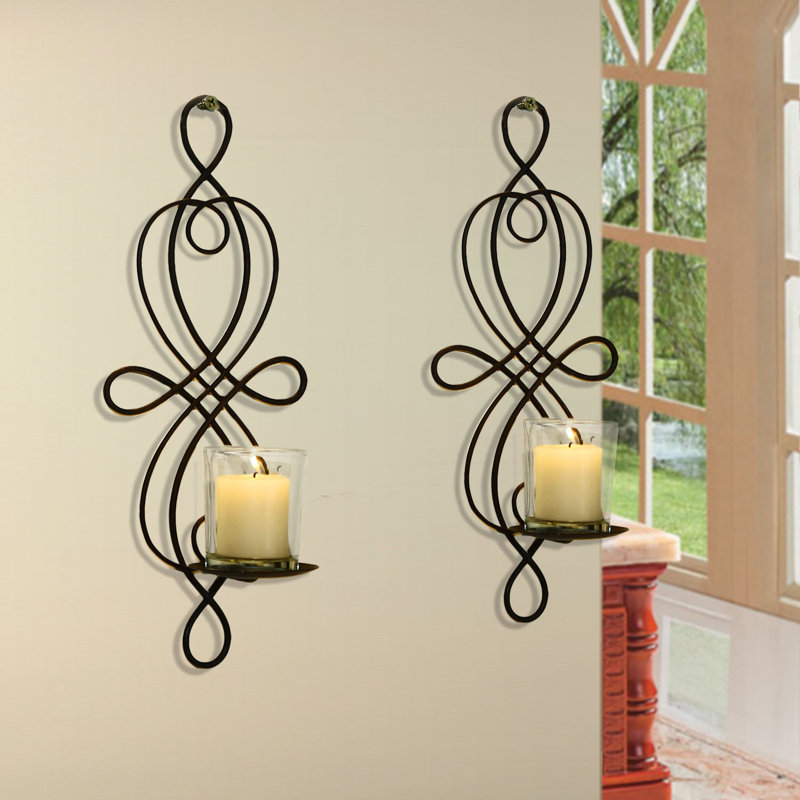 Wall Sconces For Candles Iron Holder 2 Set Metal Scroll Decor Bronze Finish