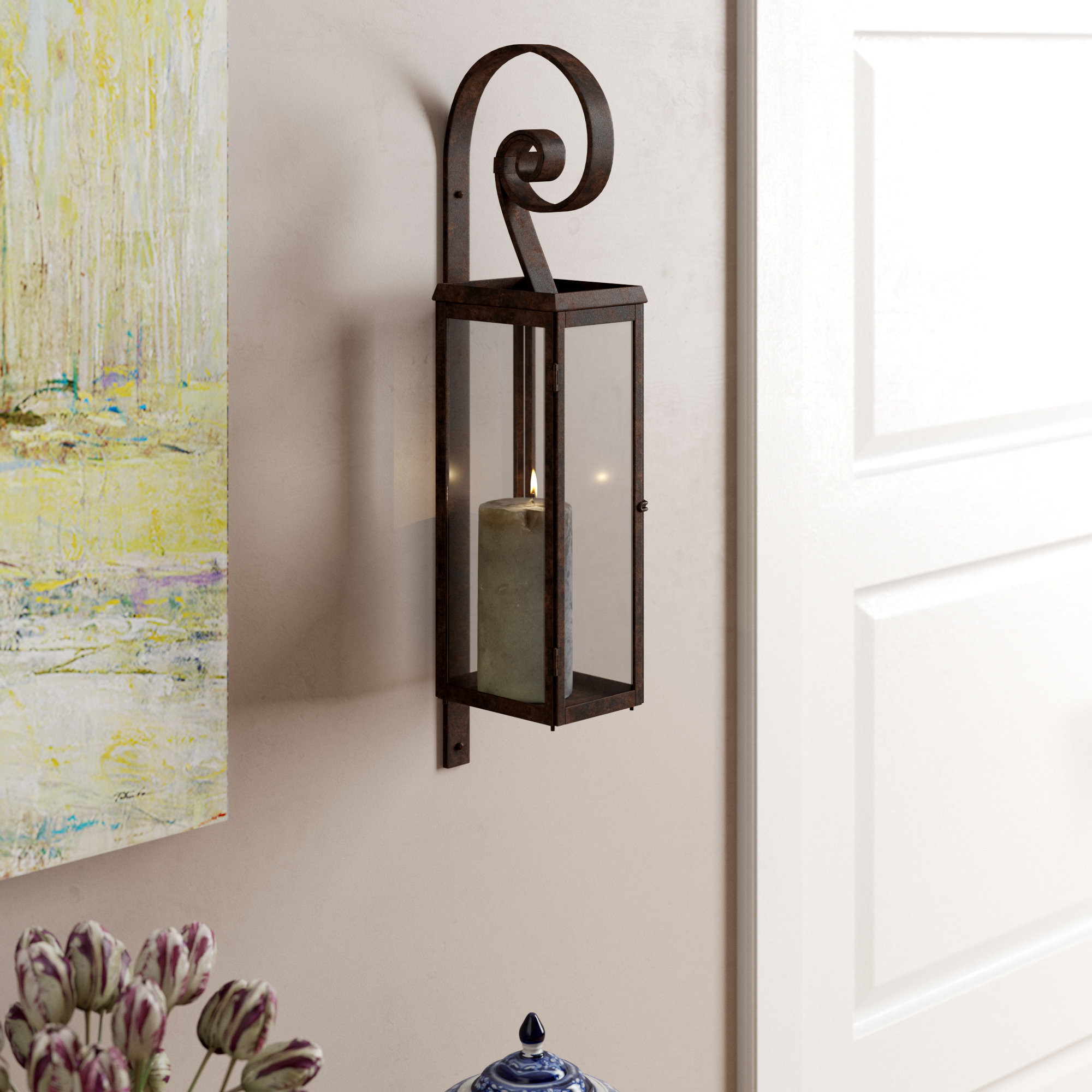 Scroll Wall Sconce Candle Holder Clear Iron With Glass Hurricane Vintage Large New Wall Candle Holders