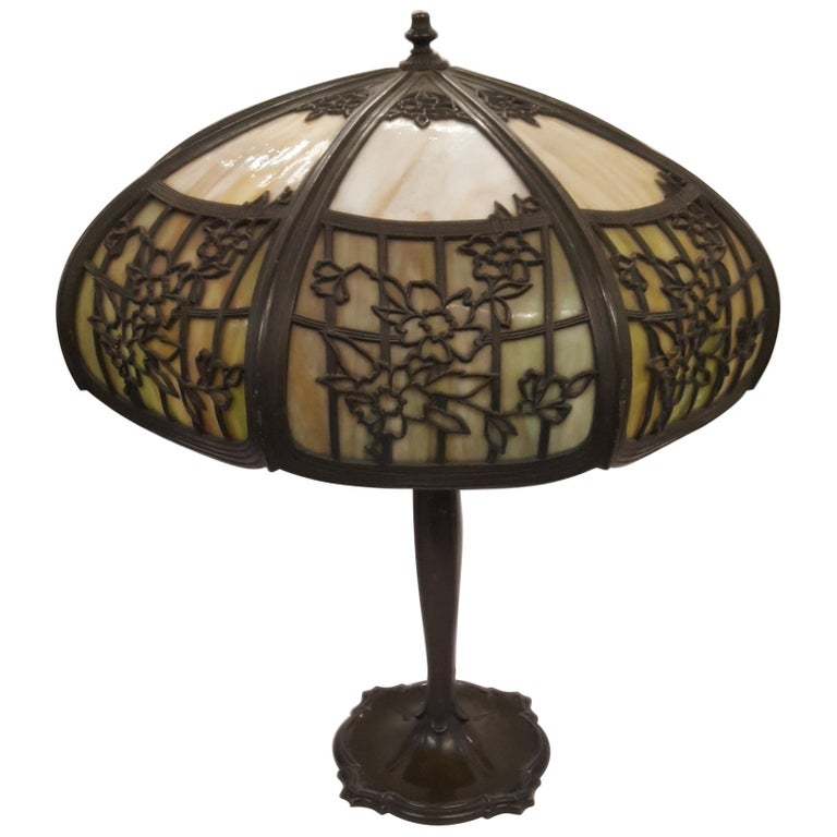 Early 20th Century Table Lamp With Glass And Pierced Metal Shade