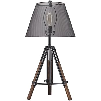 Tripod Table Lamp With Wire Mesh Aged Metal Shade Industrial