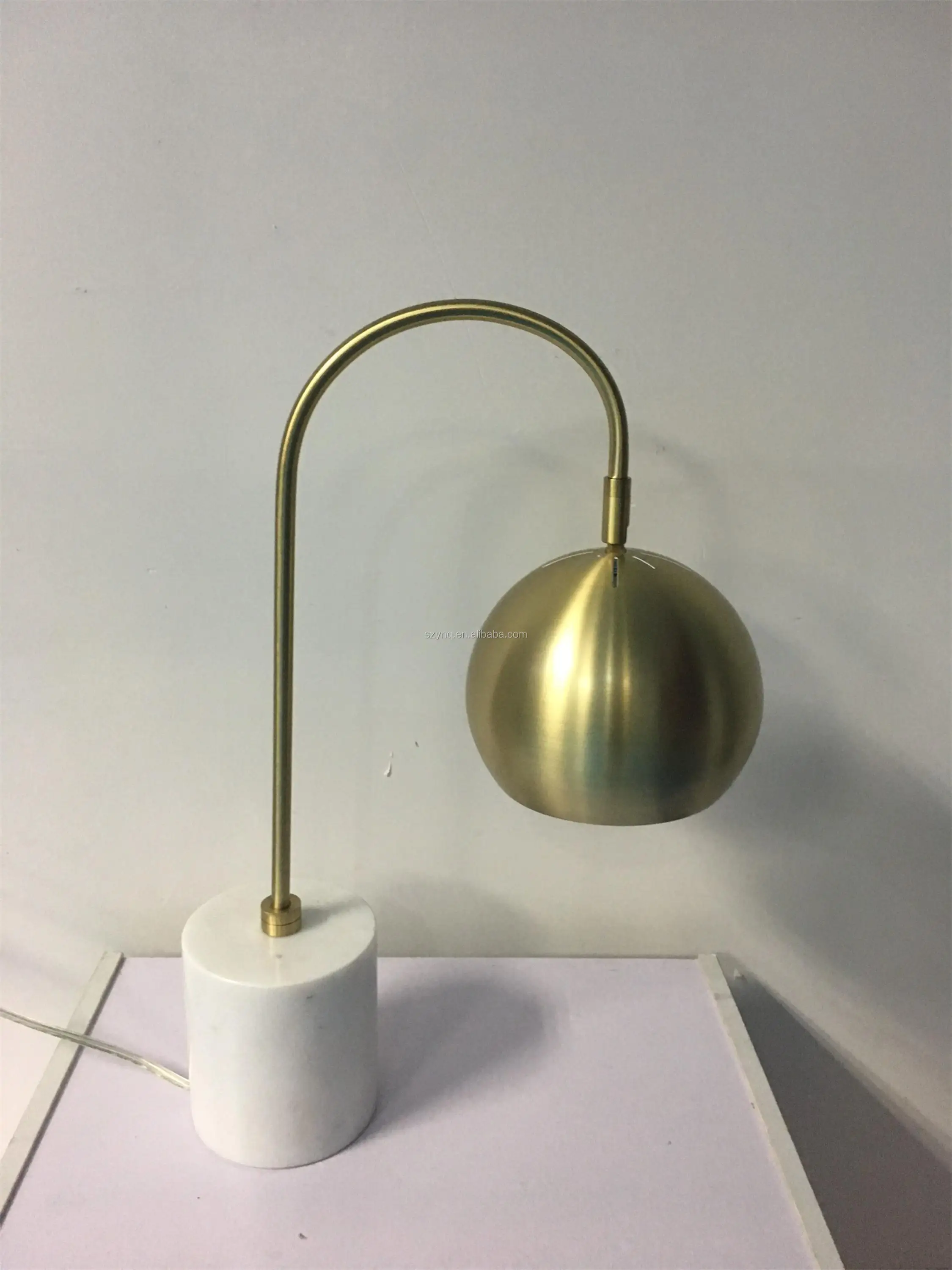 Wrought Marble Base Design Desk Table Lamp With Brass Copper Metal