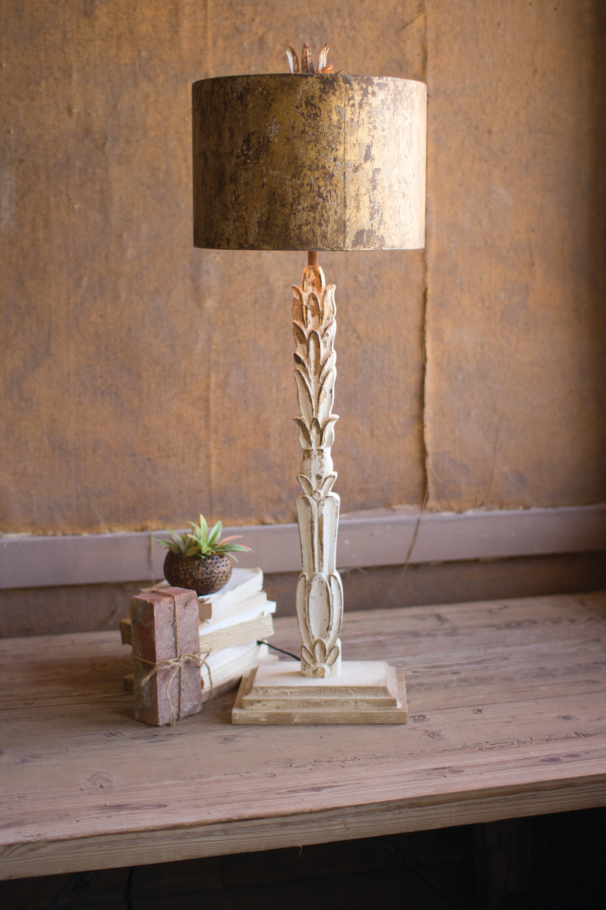 Ophelia Co Table Lamp Carved Wooden Base With Rustic Metal