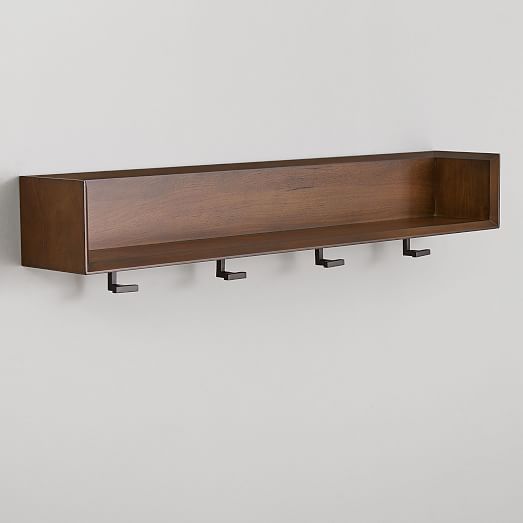 Rustic Mango Wood Shelf With Hooks Pottery Barn