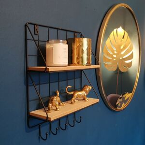 Round Gold Metal Wall Shelf With Hooks Melody Maison