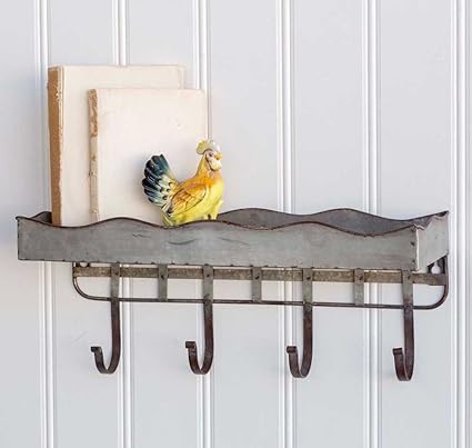 Rustic Galvanized Metal Wall Shelf With Hooks Kirklands