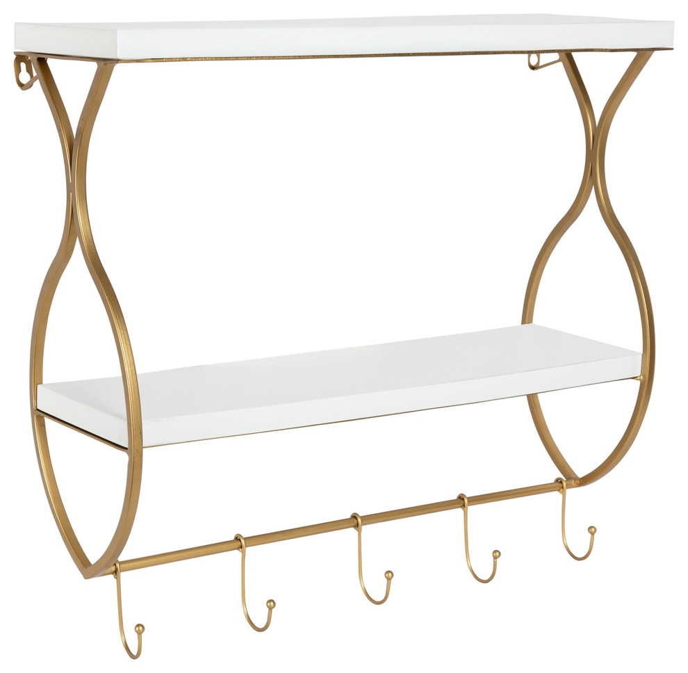 Wooden And Metal Double Wall Shelf With Hooks Kirklands
