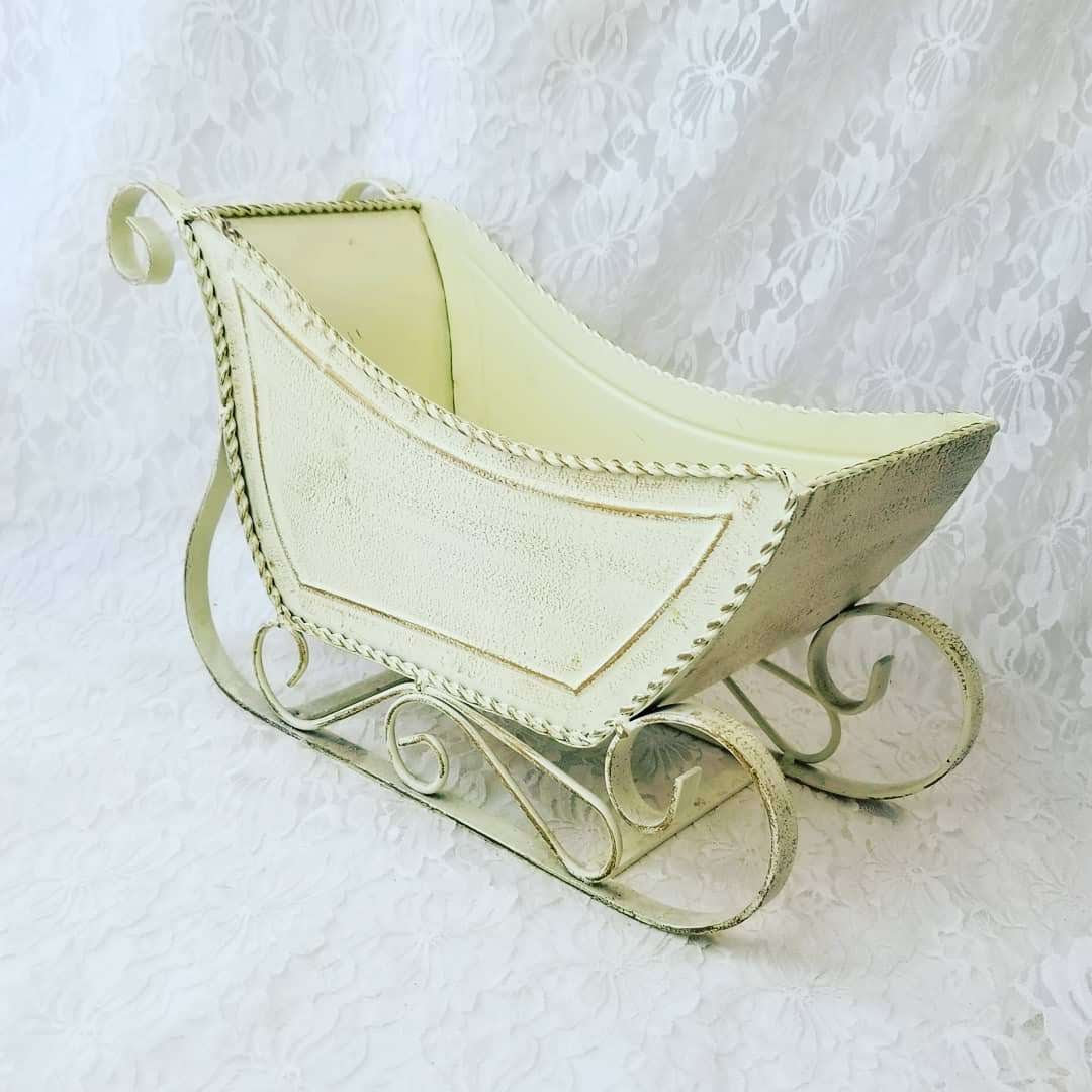 Vintage Christmas Sleigh Distressed Metal Centerpiece Planter Basket Christmas Decoration Holiday Home Decoration