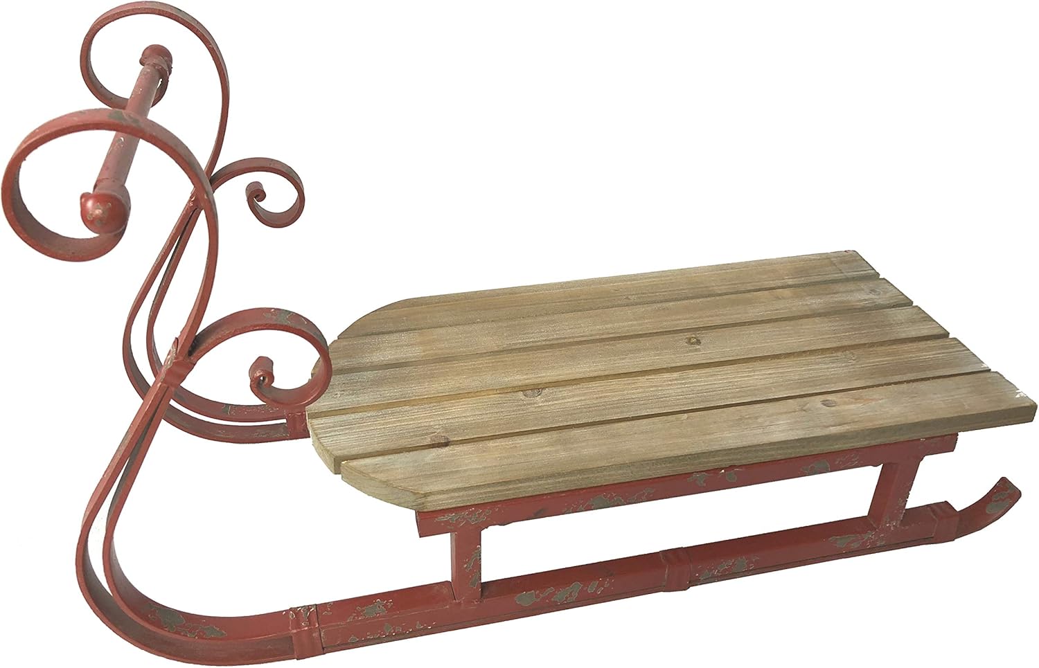 Amazon Com Sunset Vista 38 Inches Red Wood And Metal Sleigh Christmas Decor Home Kitchen