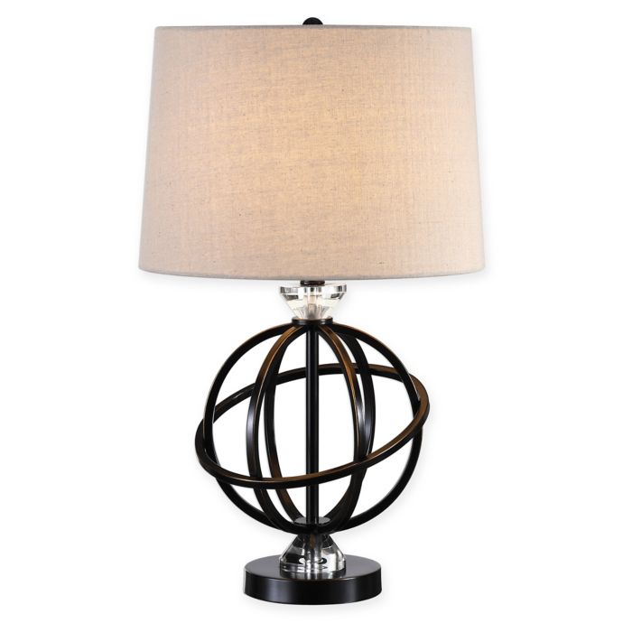 Uttermost Armilla Metal Orb Table Lamp In Gloss Black With Oatmeal