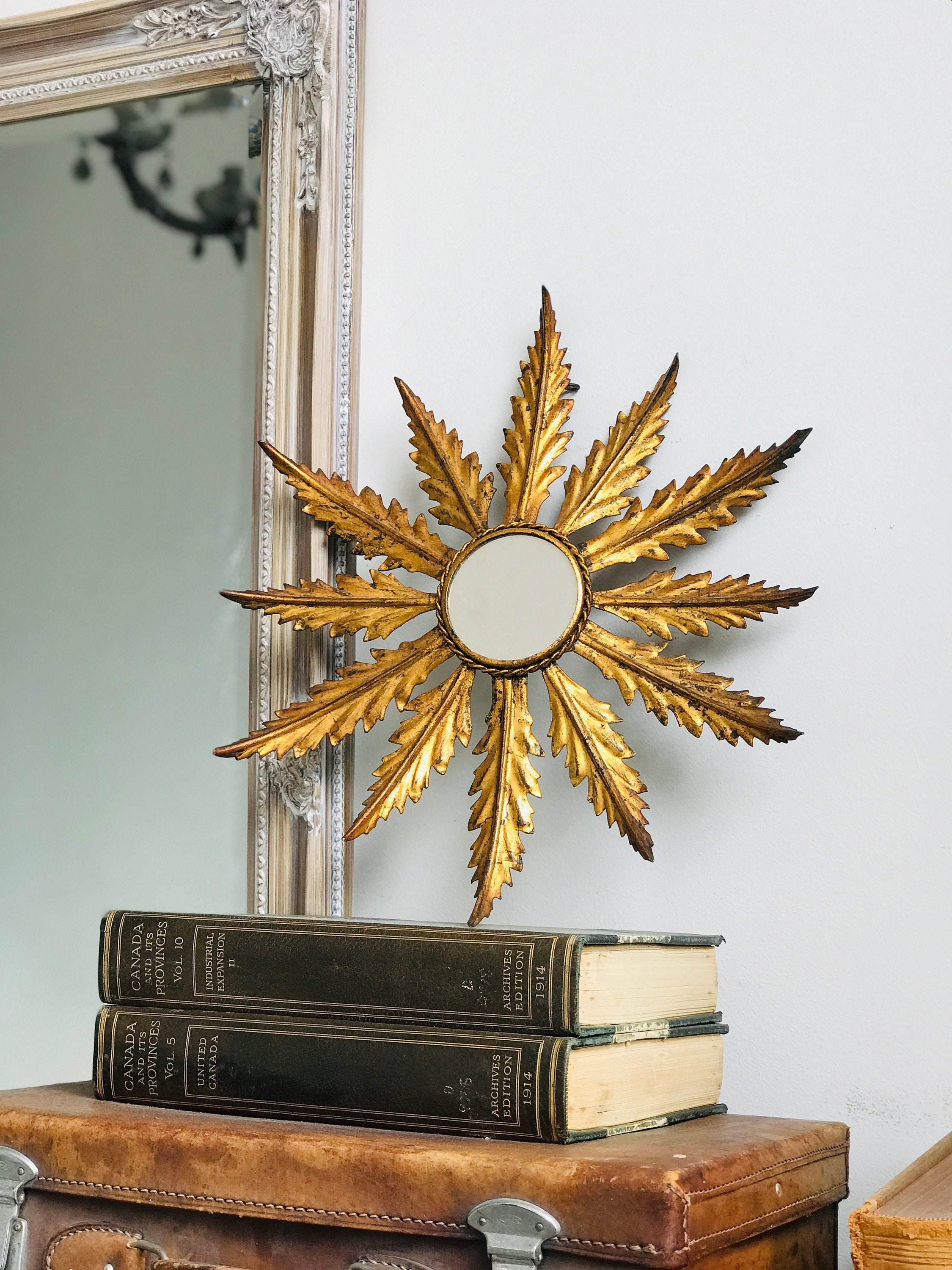 Vintage Gold Metal Sunburst Mirror Vintage Ornamental Starburst