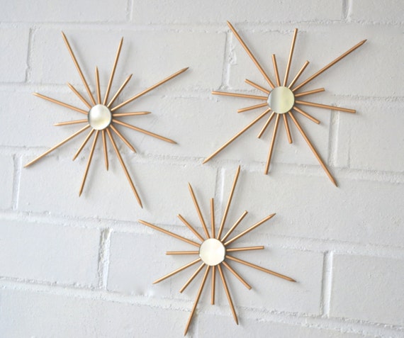Metal Starbursts Tiny Trio Gold Metallic Sunburst Wall Art Etsy