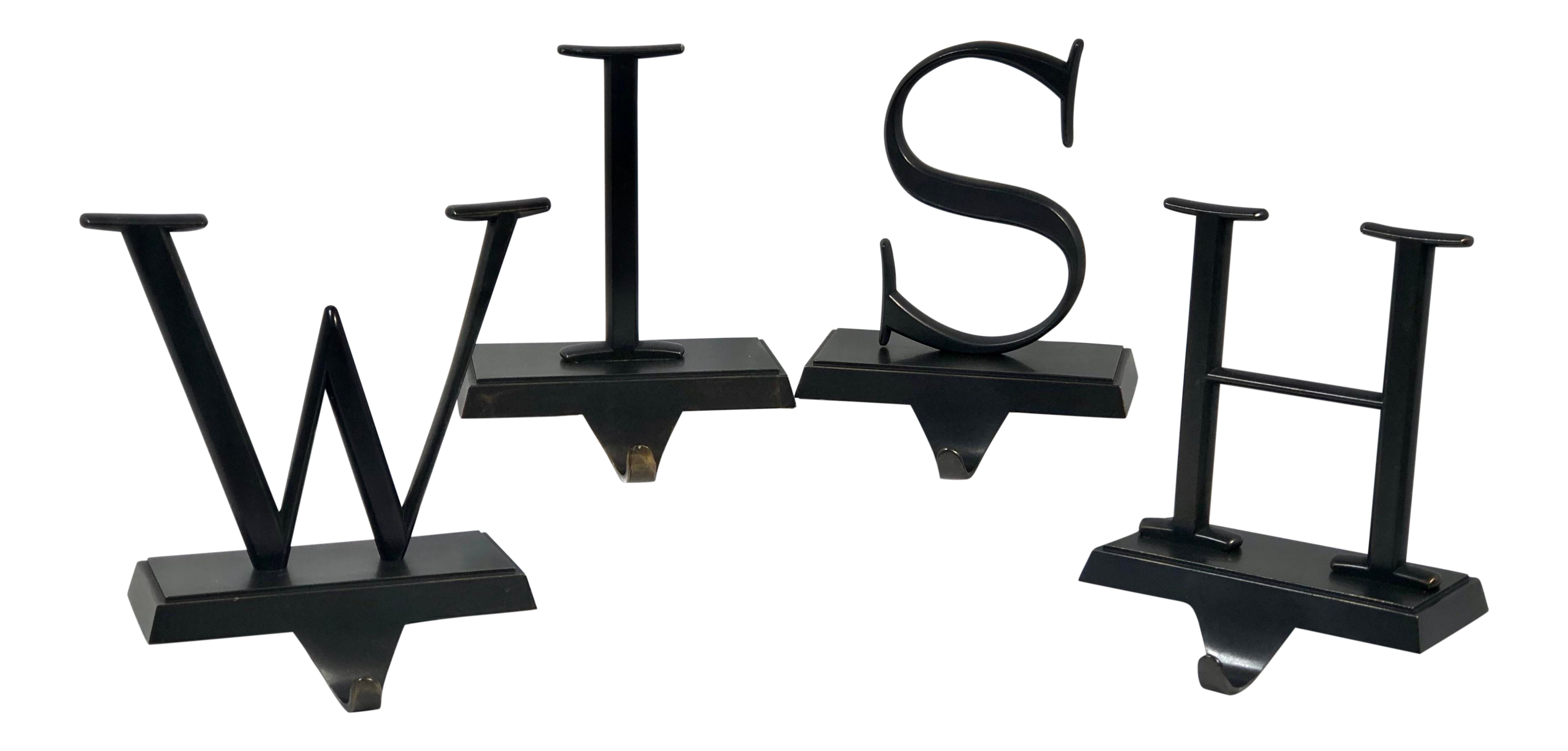 Set Of 4 Mantle Christmas Stocking Holders Wish Black Metal