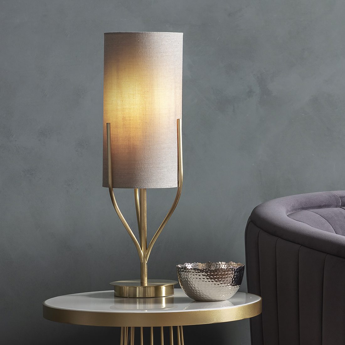 Gold Table Lamp With Cylinder Shade Primrose Plum