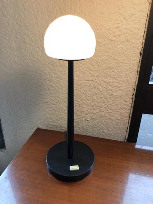 White Opaline And Black Metal Table Lamp 1980s For Sale At Pamono