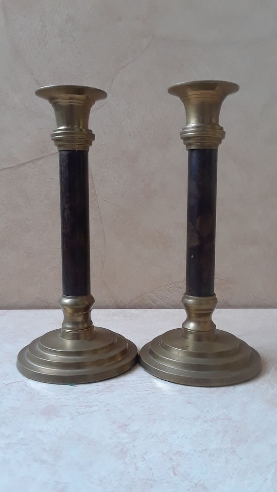 Vintage Brass And Brown Metal Taper Candle Holders 2 Brass Etsy