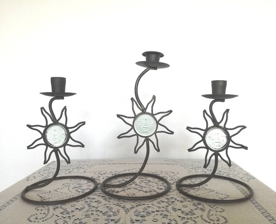 Vintage Glass Sun Rustic Metal Taper Candle Holders Set Of 3 Etsy