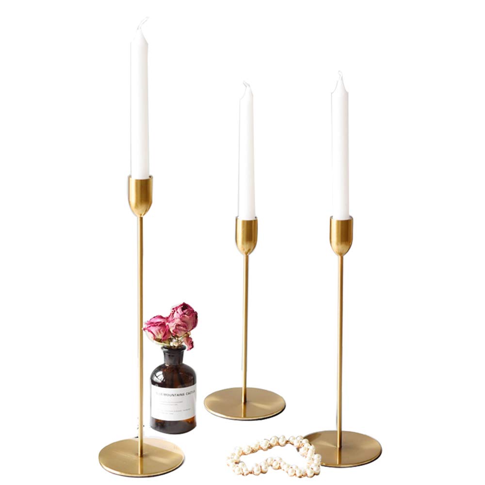Nuptio 3 Pcs Brass Gold Metal Taper Candle Holders Candlestick