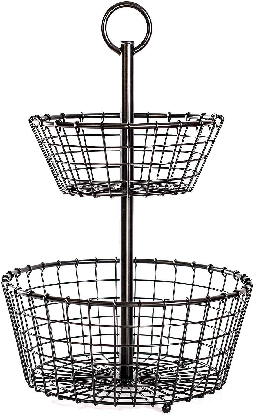 Birdrock Home 2 Tier Wire Fruit Basket Round Metal Standing
