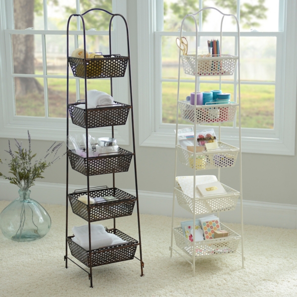 Wood And Metal Basket 3 Tier Stand Floor Baskets Bathroom Floor