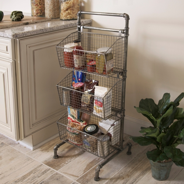3 Tier Grey Metal Basket Rack 12 1 2 L X 12 3 4 W X 42 H