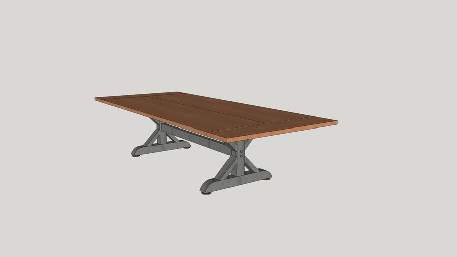 Farmhouse Trestle Table With Eucalyptus Top Metal Base 3d