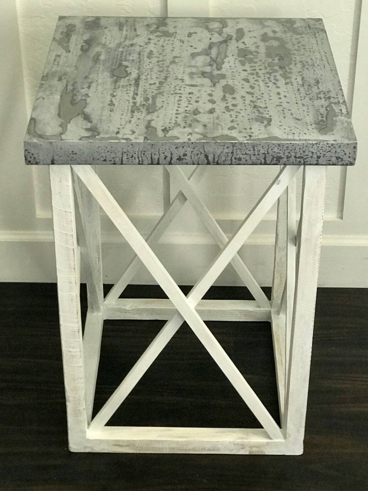 Make A Farmhouse Metal Top Table From A Pet Kennel Pan