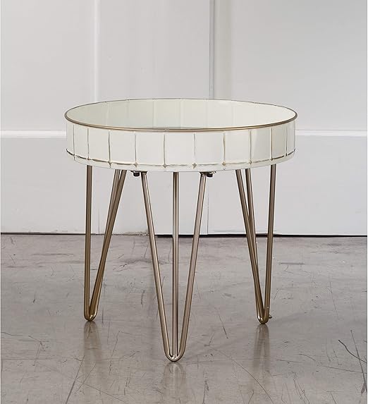 Amazon Com Cream Mirrored Side Table Farmhouse Glam Round Metal
