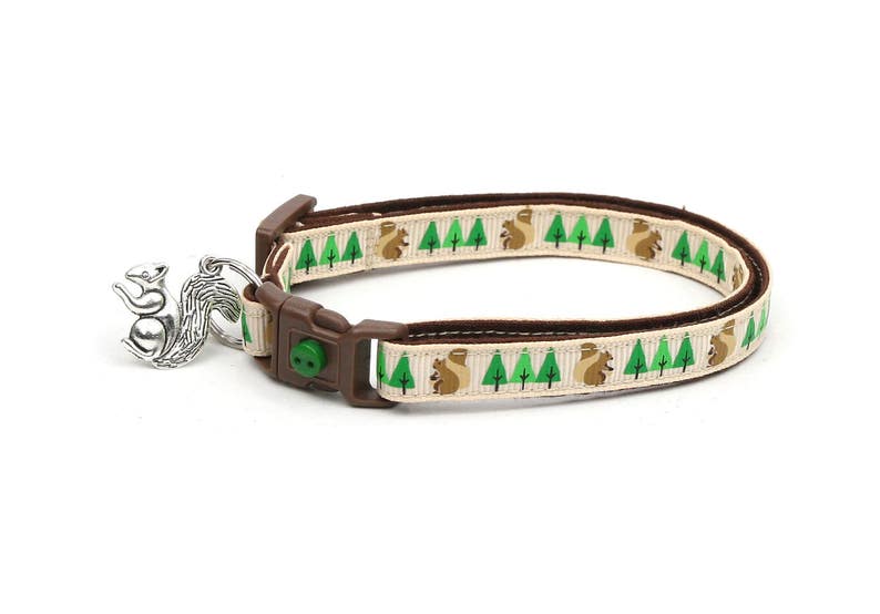 Woodland Cat Collar Squirrels And Trees On Tan Small Cat Etsy