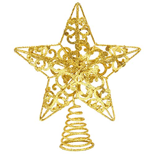 Aneco 10 Inches Metal Glittered Christmas Tree Topper Star Treetop