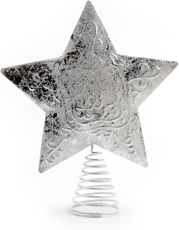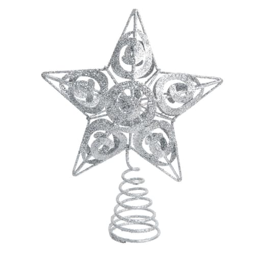 10 Metal Glittered Silver Star Tree Topper
