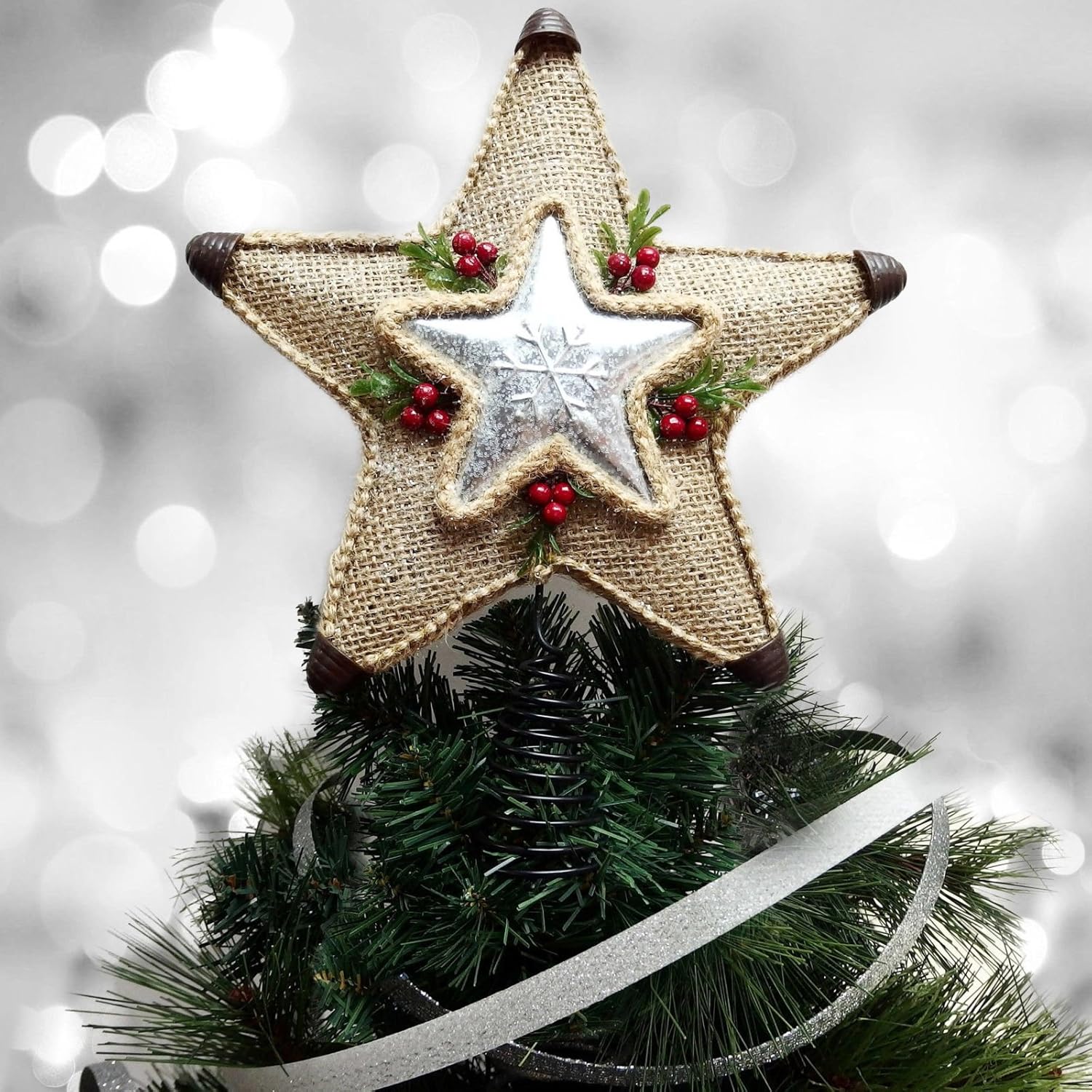 Tree Toppers Silver Metal Tree Topper Christmas Dingle Balls Home