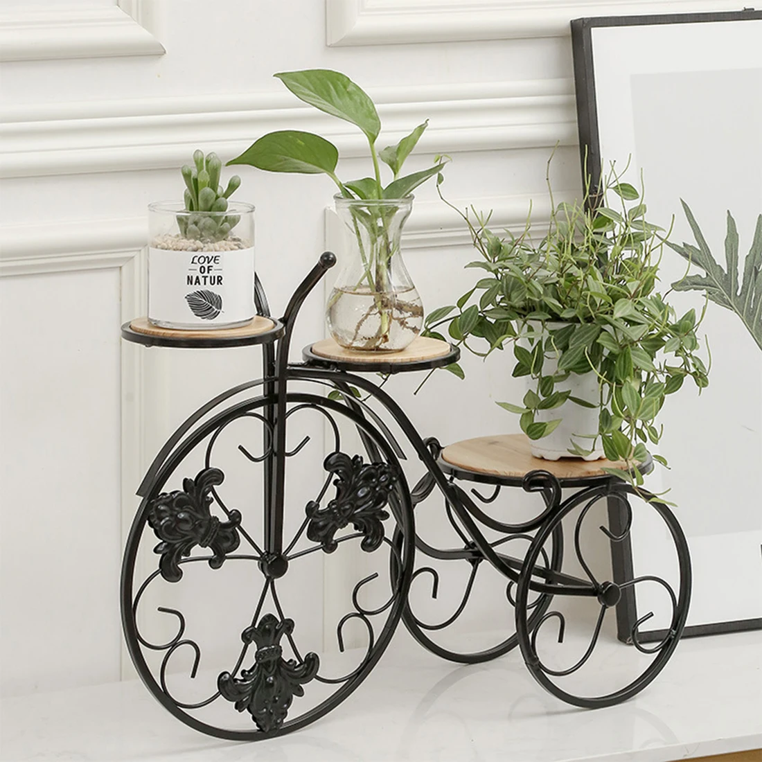 Metal Garden Home Decor Iron Metal 3 Tier Tricycle Flower Pot
