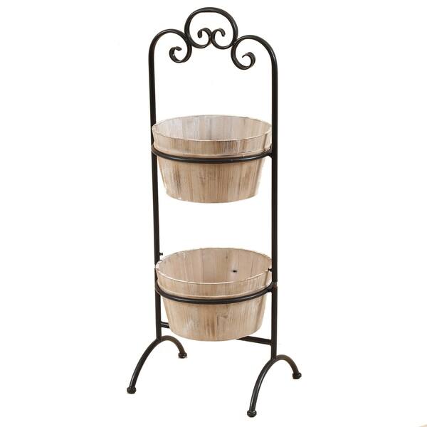 Shop Two Tier Wood Planters With Metal Stand Overstock 30931970