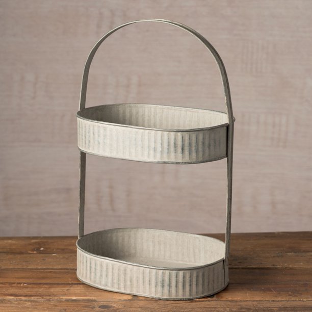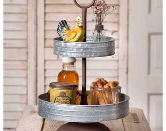 Vintage Barnyard Style Galvanized Metal Two Tier Annabeth Serving