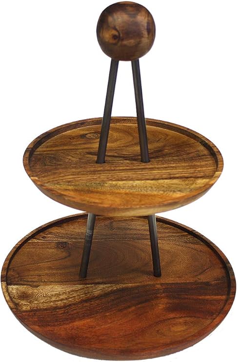 Mountain Woods Brown Solid Acacia Wood Two Tiered Serving Stand Tray