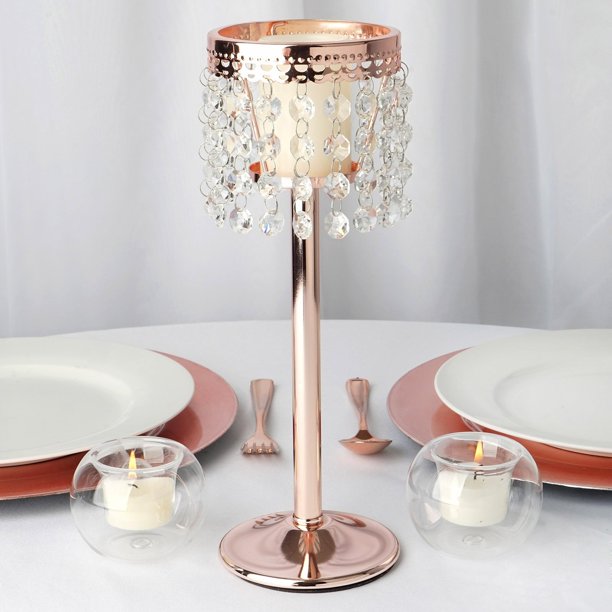 Efavormart Rose Gold Metal Votive Tealight Crystal Candle Holder