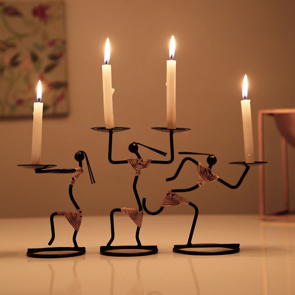 Indian South Asian Candle Holders Accessories Square Dance Black
