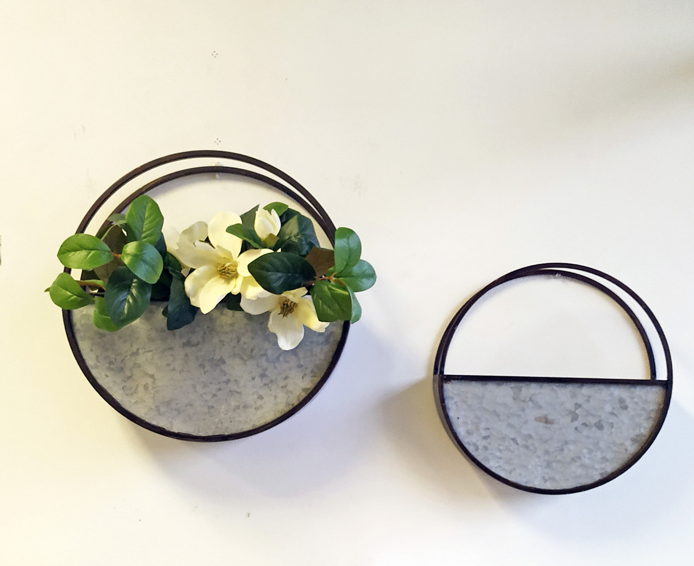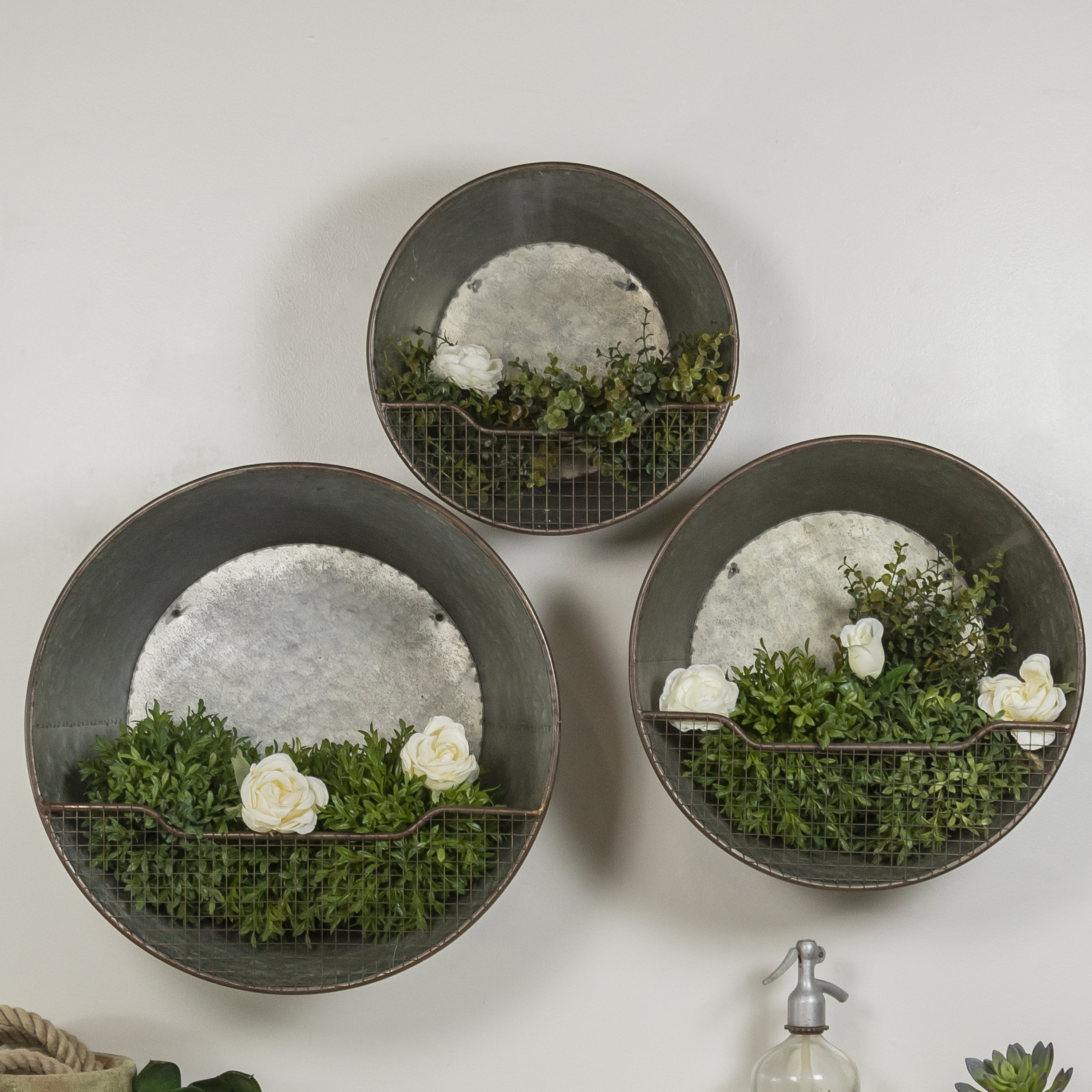 Galvanized Wall Pockets Metal Round Wall Baskets Planters Set Of