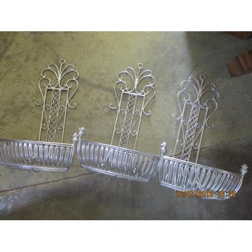 3 X Silver Coloured Metal Wall Hanging Baskets For Plants