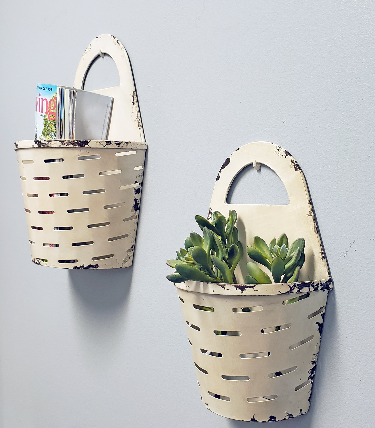 Gracie Oaks Farias Metal Buckets Wall Storage Organizer With Wall Basket Wayfair