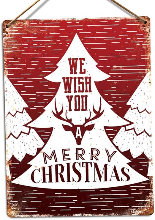 Amazon Com Pottelove We Wish You Christmas Tree Metal Wall Sign